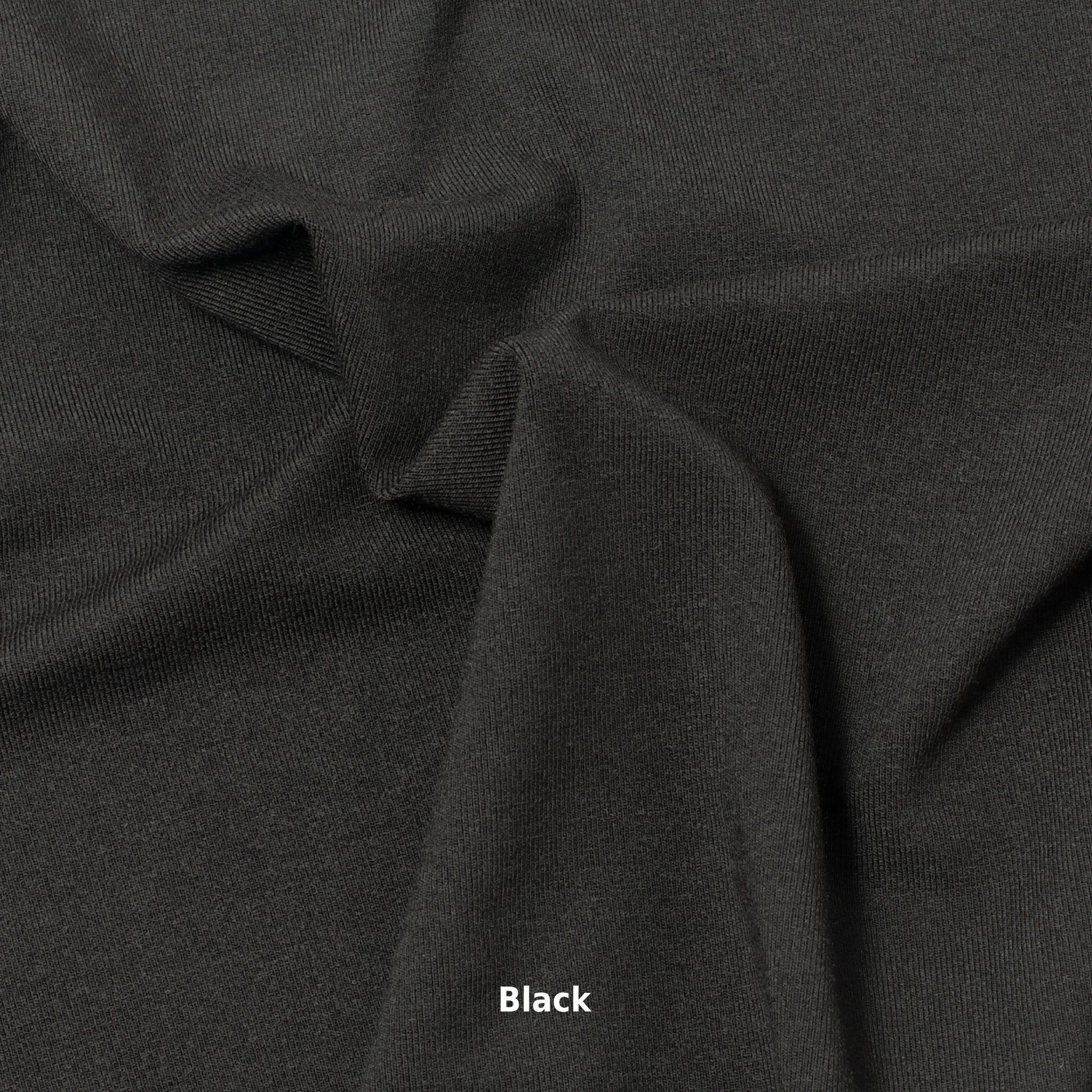 Lenzing yarn is known for its high quality and sustainable process. Our knit jersey fabric made with this material is super soft, breathable and cool. Viscose is a silk alternative made from wood pulp from fast growing, regenerative trees. It is biodegradable and eco friendly.