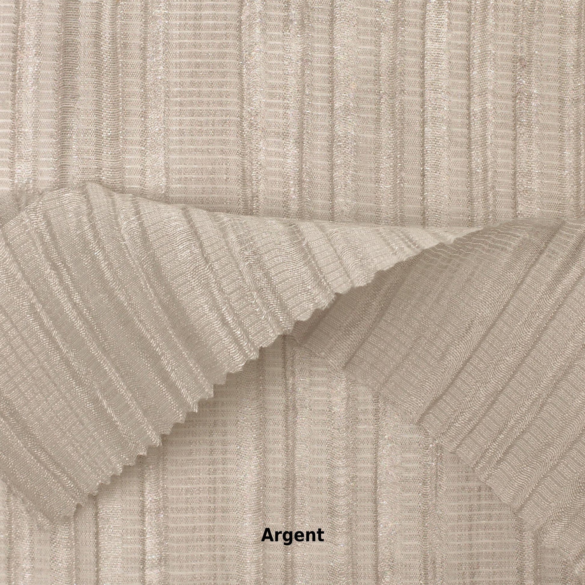 Firm hand tencel with textured raised vertical stripes throughout of varying widths.