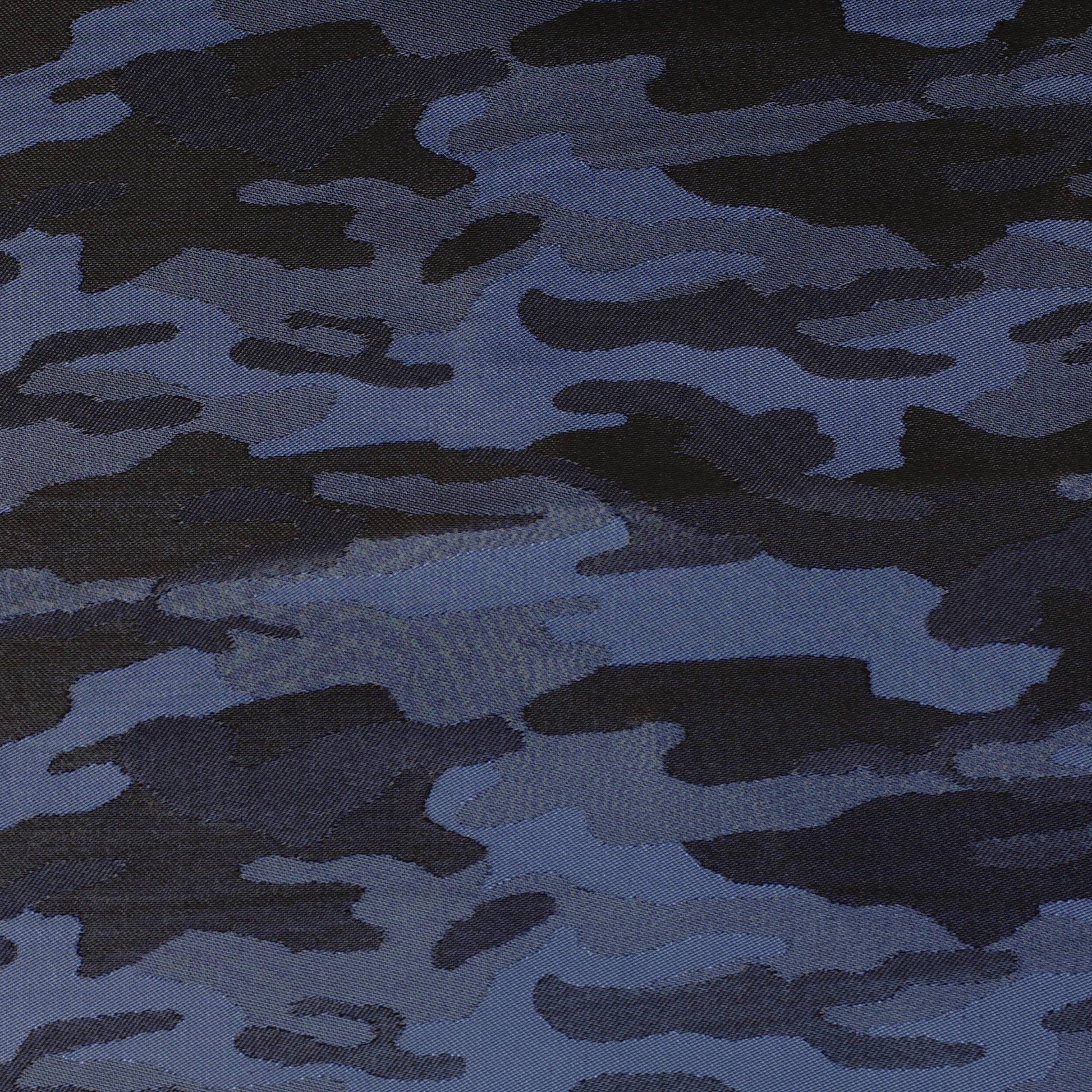 Dark blue camouflage pattern jaquard lining with a smooth and shiny surface.