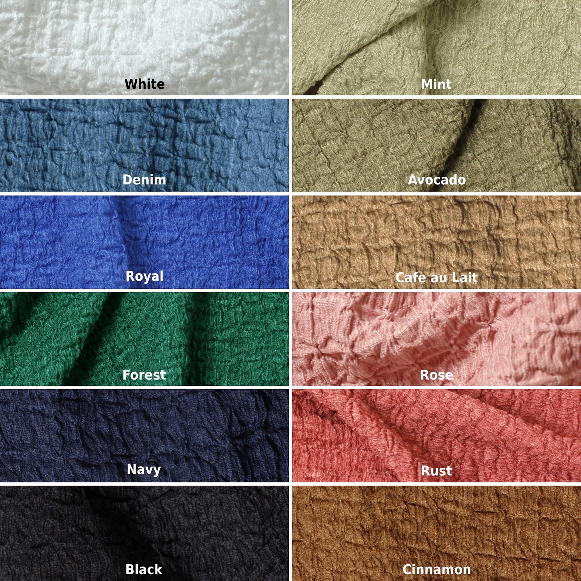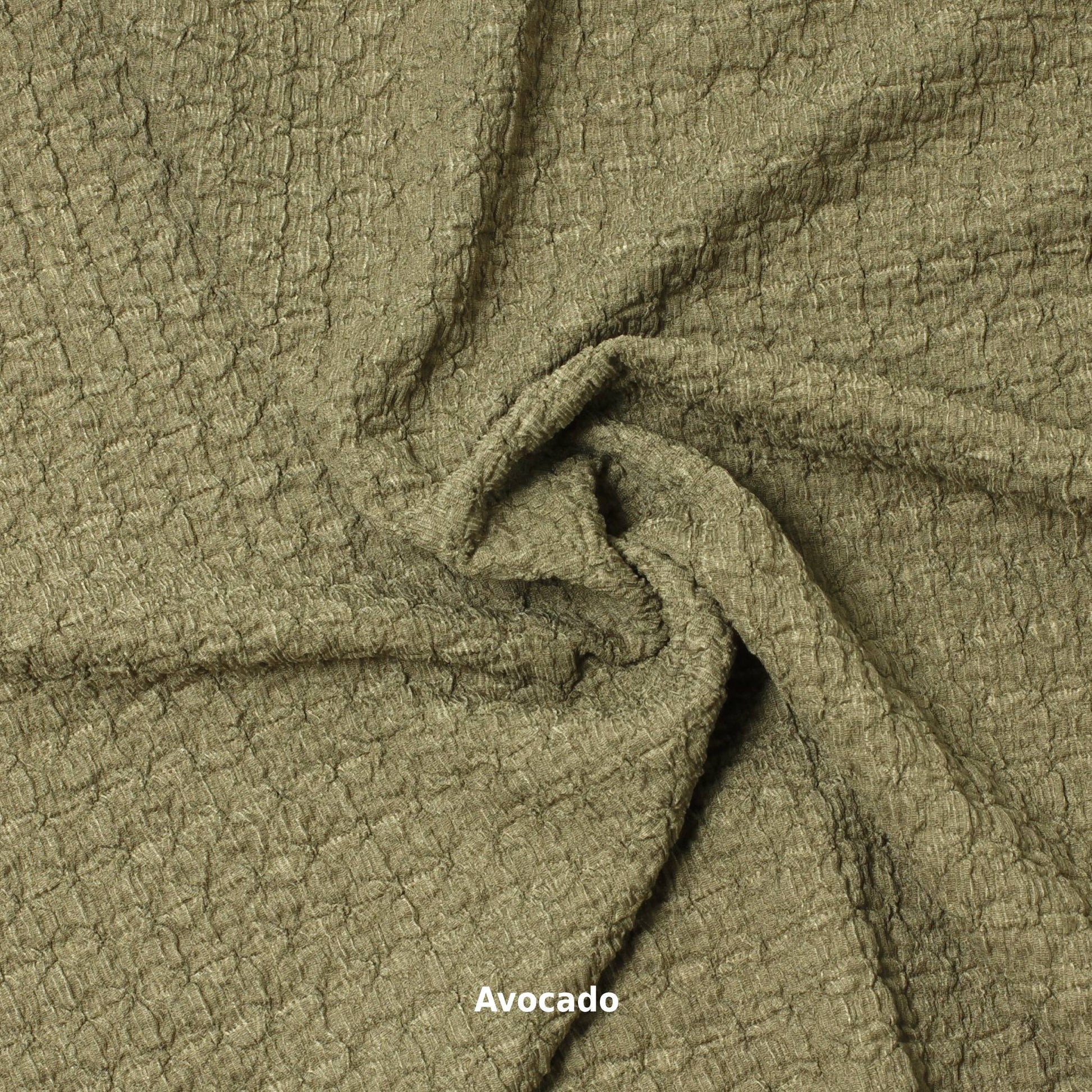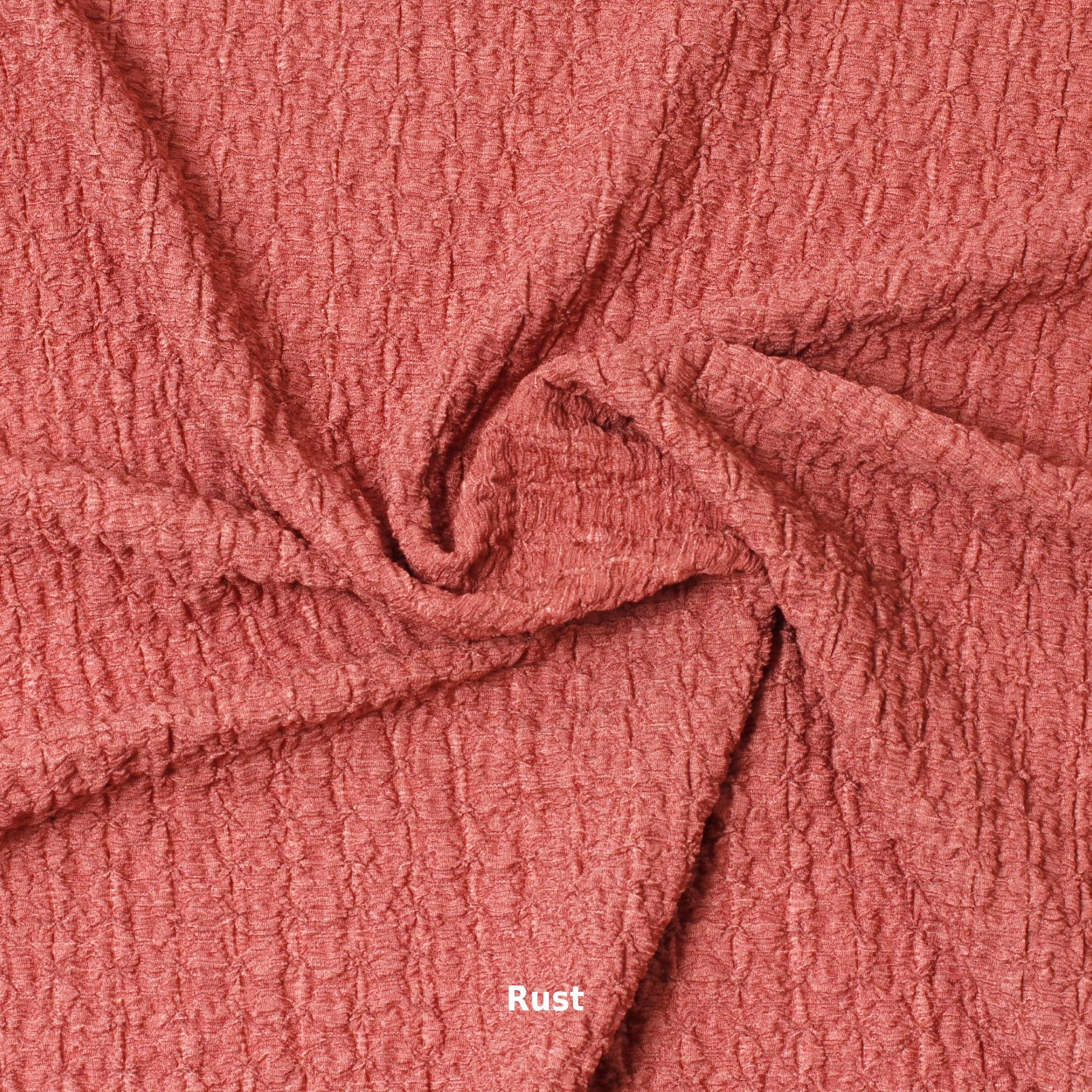 This fabric has an eye-catching texture resembling a waffle giving it a unique look while being soft, comfortable and stretchy.